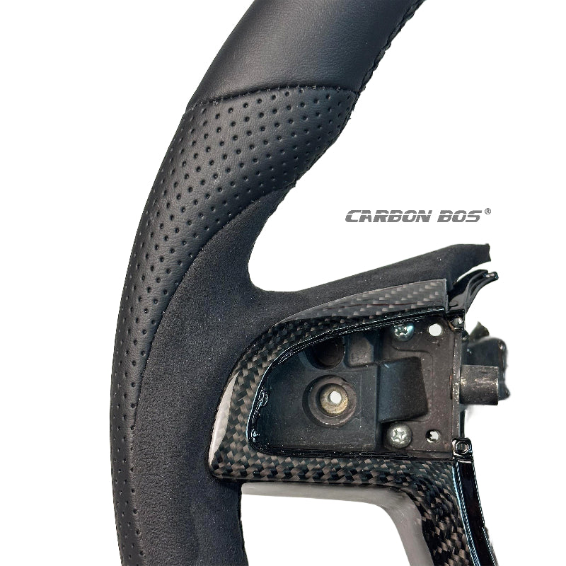 Smooth leather patchwork with Alcantara and carbon fiber trim